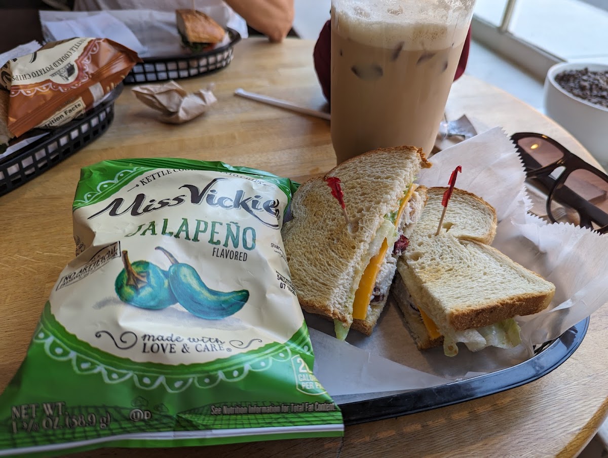 Great place for coffee and sandwiches. I got a chicken salad sandwich on toasted sourdough, and my wife and daughter both got caprese sandwiches on ciabatta -- we all enjoyed them! The bread is baked on-site, and you can tell. Also got an iced cappuccino, which was perfect -- plenty of toasty espresso flavor. The pastry selection looked good, but I skipped dessert. Staff was friendly, and there's tons of seating. Decor is charming, with a number of vintage coffee machines and grinders scattered about.